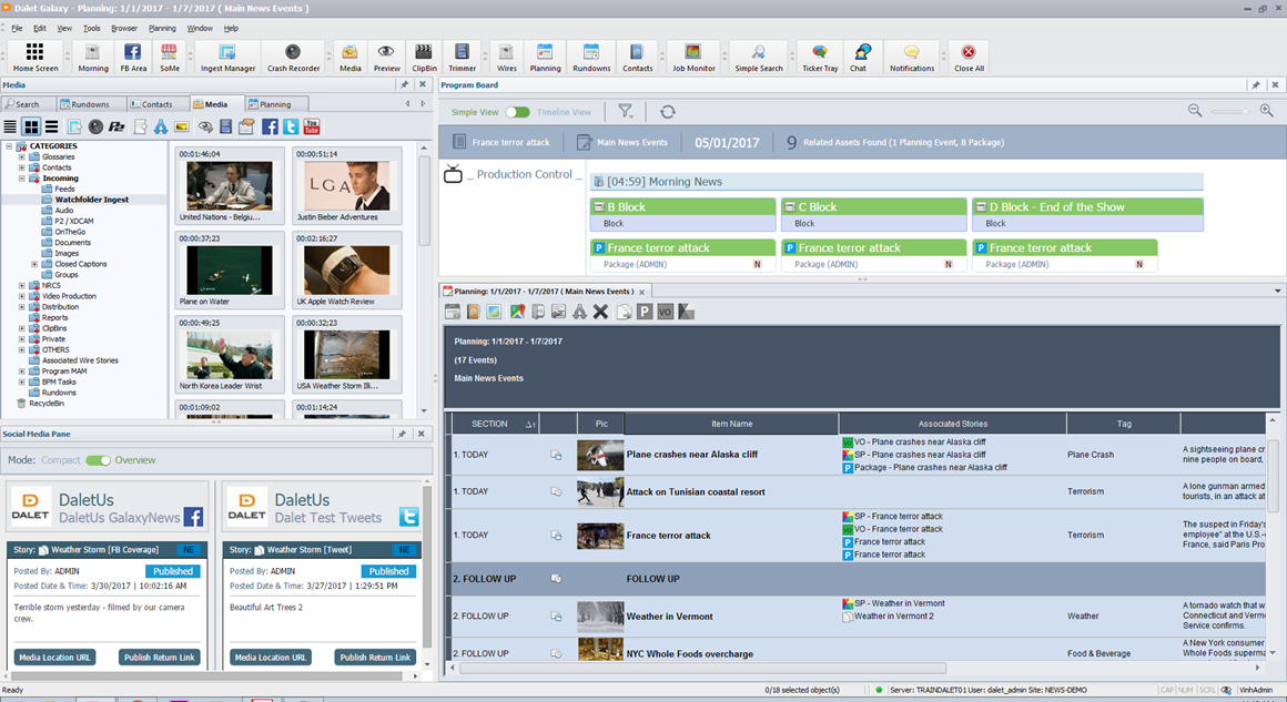 Savina adds, “The converged Dalet social media framework is designed to facilitate story curation and distribution to viewing platforms such as web and traditional broadcast while simultaneously outputting updates back to the social media networks. It’s a story-centric model that allows teams to deliver content that meets the consumption habits and expectations of all audiences, whether they are consuming complete news stories on social or simply using it as a method of finding news to be read in full online or watched live on-air.”