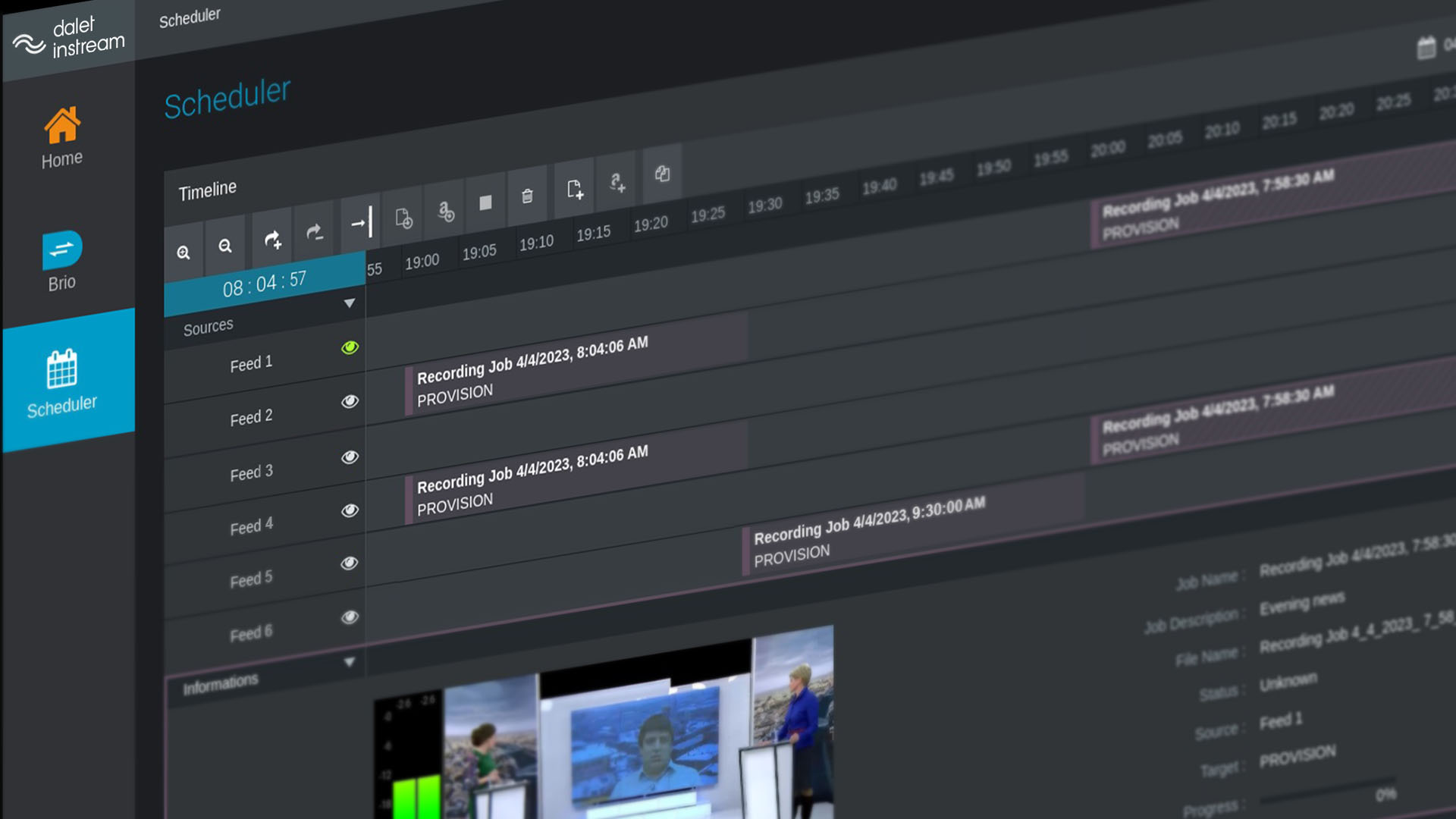 With a single system, you can manage your on-prem Dalet Brio servers for HD-SDI ingest as well as your InStream streaming feeds all in one scheduler. Avoid duplication and maximize your efficiencies by accessing all of your ingests in one centralized platform.