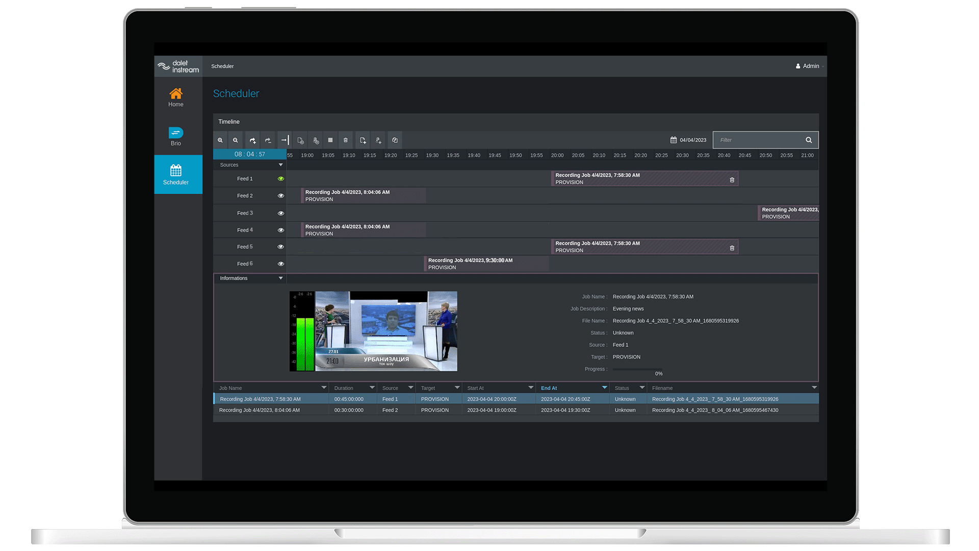 Combined with Dalet Brio, schedule both your on-premises SDI and your streaming ingest in a single scheduler. Access and manage streams from anywhere across multiple sites for increased efficiency.