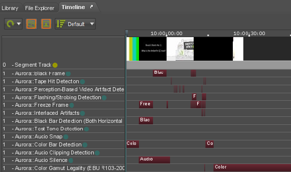Once the analysis is complete any potential problem areas are highlighted in a QCML file, a QC report which can live with the asset for the duration of its lifecycle, Loading the asset into the iCR player also loads this QC data collected during analysis into the timeline giving a detailed visual representation of any errors\potential errors detected.