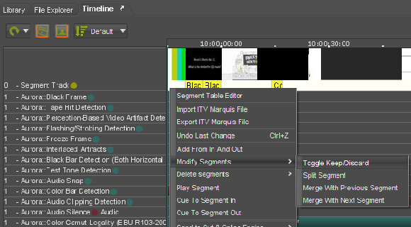 Once all potential problem areas have been reviewed, those within tolerance have been passed and those true problems have been added to the segment track we can flip them from ‘Keep’ segments to ‘Discard’ segments before submitting to the file cut and splice tool.
