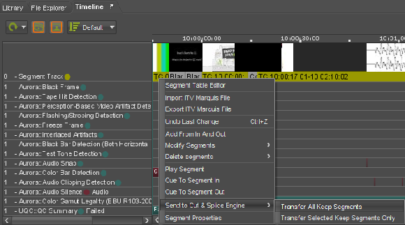 A simple right click on each of the highlighted errors and ‘Copy to Segment Track’ adds a yellow ‘keep’ segment.