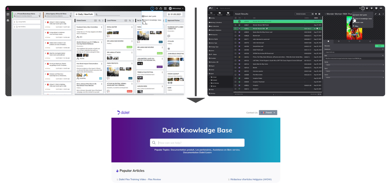 With that in mind, we are currently working on adding access to Product Knowledge Guides directly from the user interfaces, so that users can easily get information. We are also putting a new knowledge base in place with an easy search functionality. Dalet Flex and Dalet Pyramid users will benefit when looking for product documentation or for short “how to” videos.