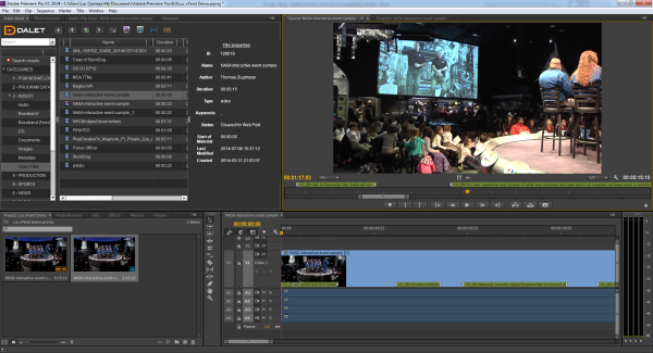 Finally with the advent of Adobe Anywhere, the same Dalet Plugin will soon be able to maintain the same user experience while connected to the Dalet MAM catalog and working with content, but instead, this content is served to the editor, say in the field, via Anywhere streaming and rendering platform.
