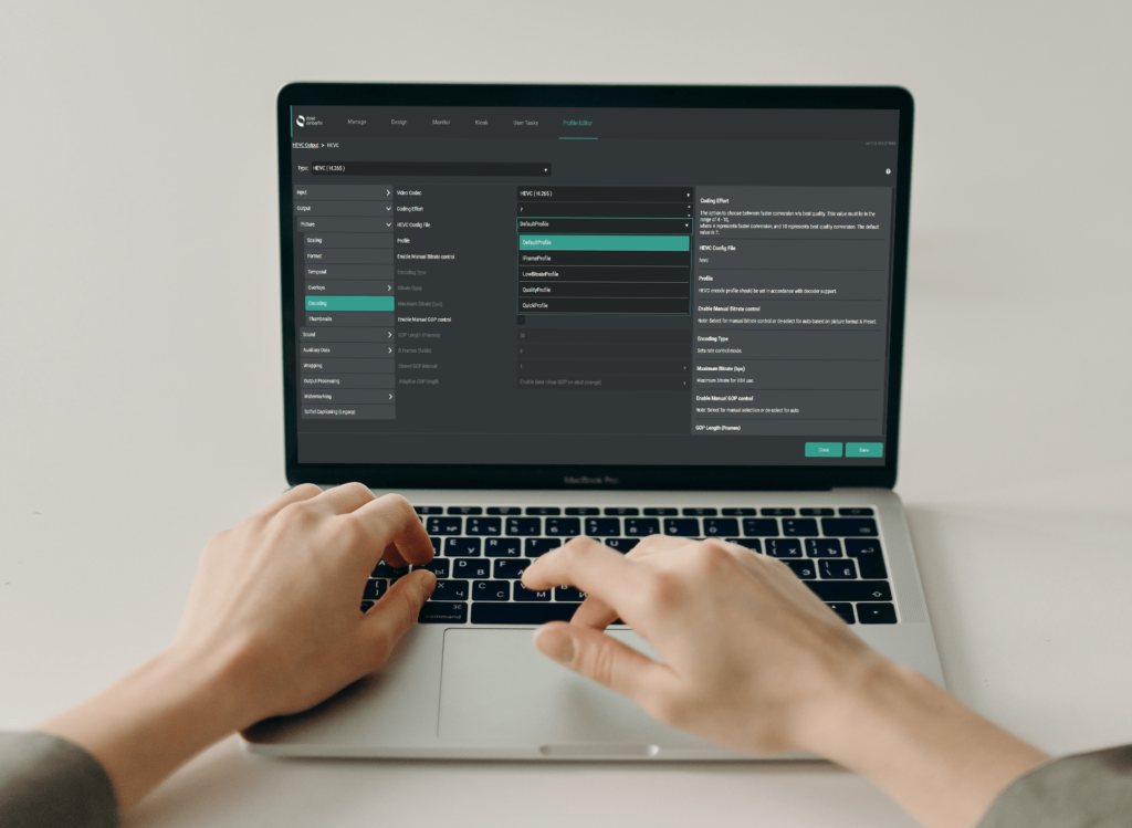 Every feature of the Dalet AmberFin platform, including the improvements in the latest release (v11.9), are available both on-premises and in the Dalet AmberFin Cloud Transcoder Service. Dalet AmberFin customers can control their on-premises and cloud transcoding resources from the same workflow engine and API, and natively use the same conversion profiles and workflows for both fixed and elastic capacity without the use of a cloud port or service team.