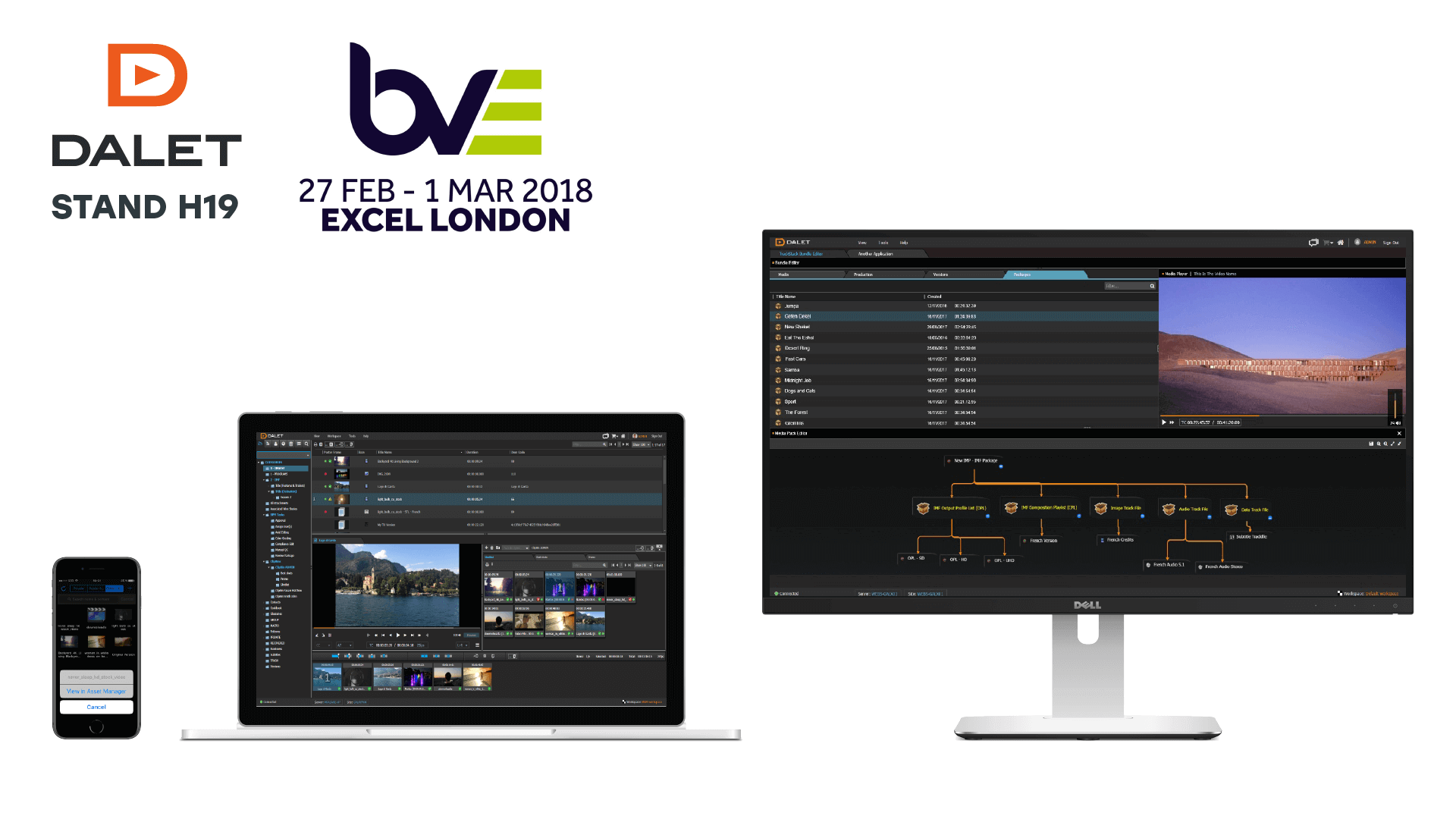 Dalet, a leading provider of solutions and services for broadcasters and content professionals, will showcase its enterprise media asset management and orchestration solutions at the upcoming BVE 2018 event on stand H19. Experts will be available to discuss critical IMF and orchestration workflows trends within the content supply chain and specifically how Dalet solutions can manage and scale IMF package production and distribution, allowing facilities to lower costs and industrialize processes.