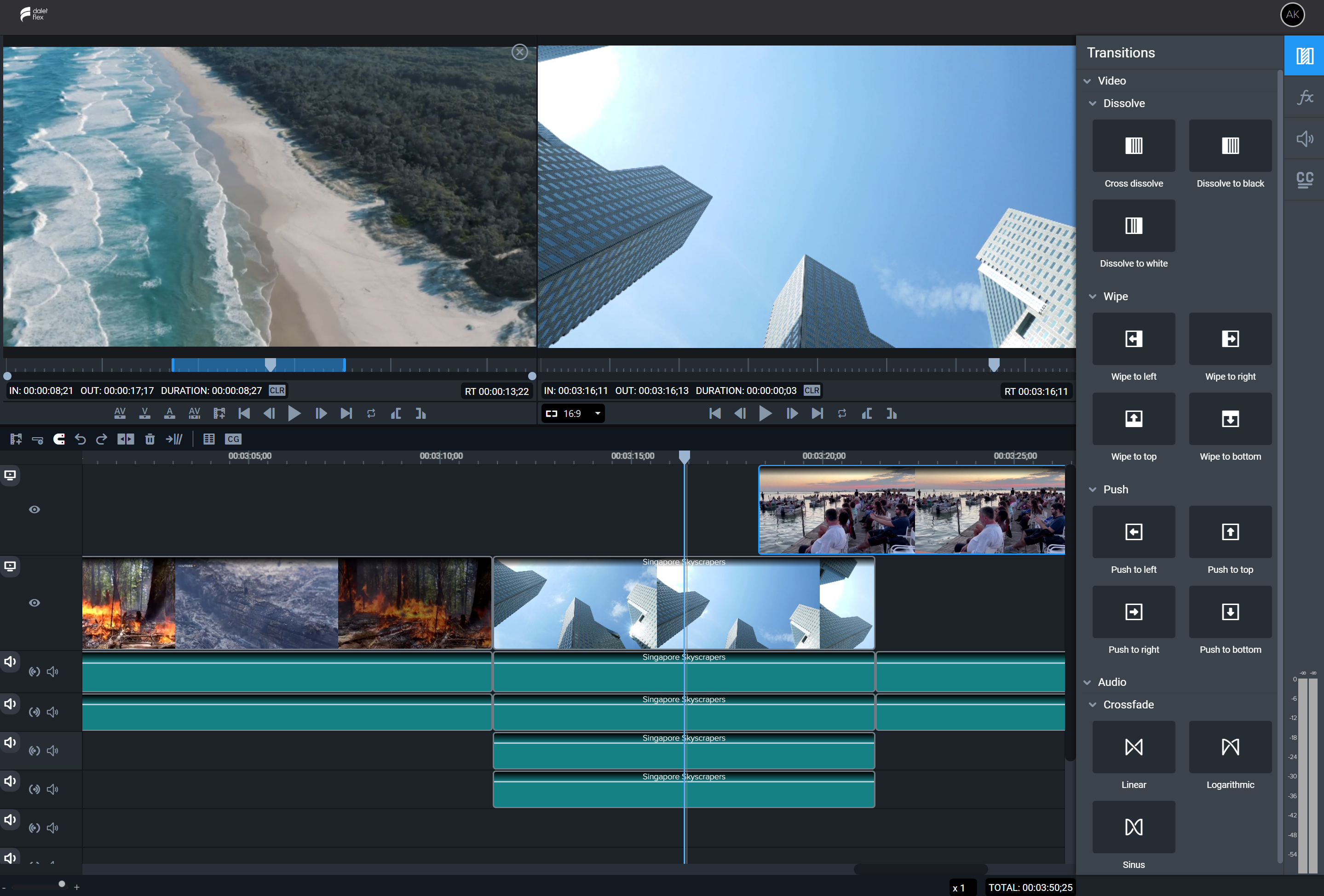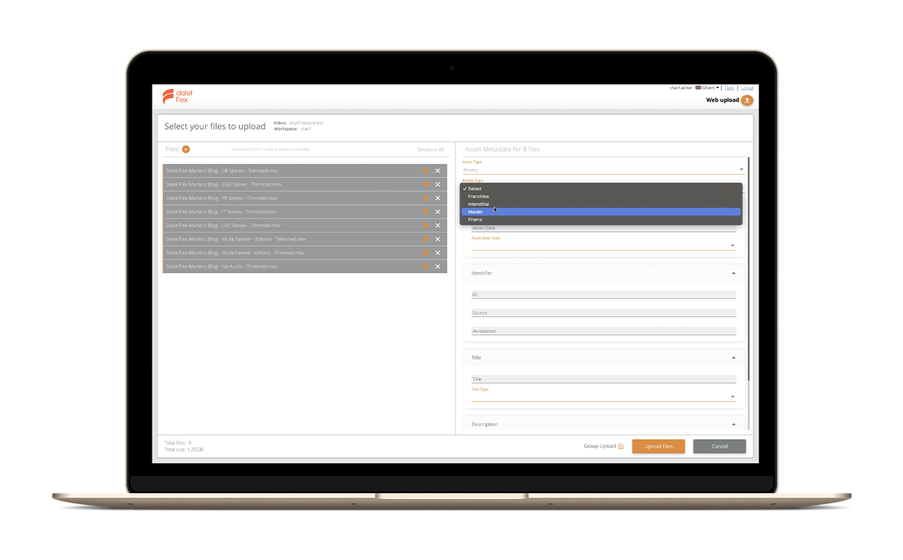 Upload and organize your assets: video, images, subtitles, text, audio files