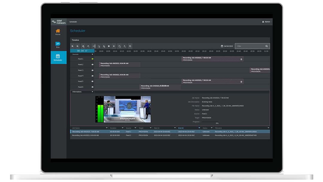 - Support a wide range of broadcast feed formats including SRT, NDI or RTMP from web sources, Zoom and backpack solutions to ingest live content from the field.