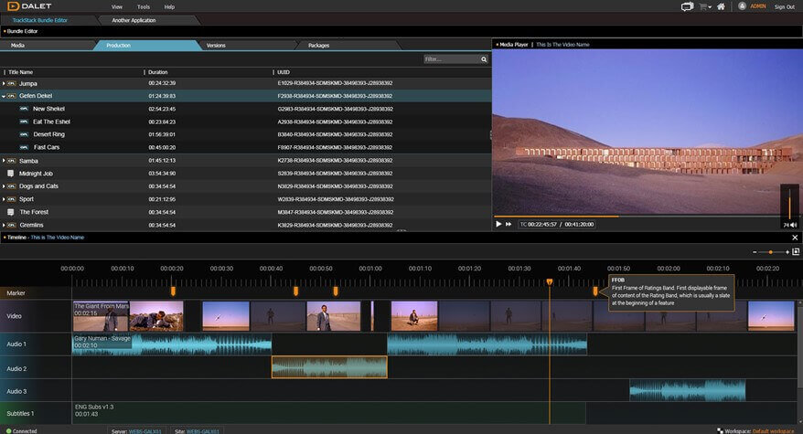 Dalet Galaxy five introduces a new set of tools within Dalet WebSpace specifically designed for preview, review and approval of all objects of an IMF package, including the CPL, with a glance at the Video Timeline available on any web client. There is no need for an extensive mastering tool. Simply import the package content into Galaxy, automatically generate proxies and extend collaborative review and approval workflows.
