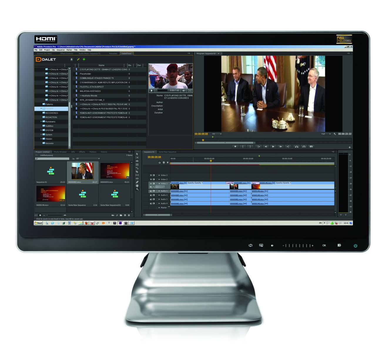 Dalet Xtend for Adobe Premiere Pro CC streamlines production for every type of workflow (news, sports, promo production, etc.). From the Xtend Panel, Adobe Premiere Pro CC users can connect directly to the Dalet database to view available content (clips, EDLs, raw videos, sound bytes, etc.). Dalet users can also push material, such as EDLs and clips created in Dalet, directly to Adobe Premiere Pro CC editors for finishing. The finished piece can then be exported back to Dalet as a new title or saved against a placeholder. It is also possible to trigger specific events, such as review and approval processes or Web publishing, when saving against a placeholder. For instance, when material is opened into the NLE, the different locators (QC information, sports logs, rights metadata, etc.) are visible to the users. The craft editors can also add additional metadata as they work. Essential information, such as descriptive locators and usage rights, flows back and forth and is tracked by the Dalet content catalogue.