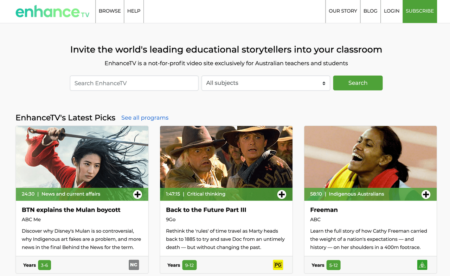 As a non-profit, EnhanceTV curates the best of Broadcast TV to safely deliver the most relevant curriculum-linked videos to Australian Educational Institutions.