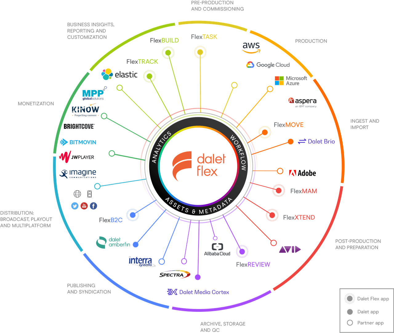 Some of the hundreds of partner integrations within the Dalet Flex ecosystem