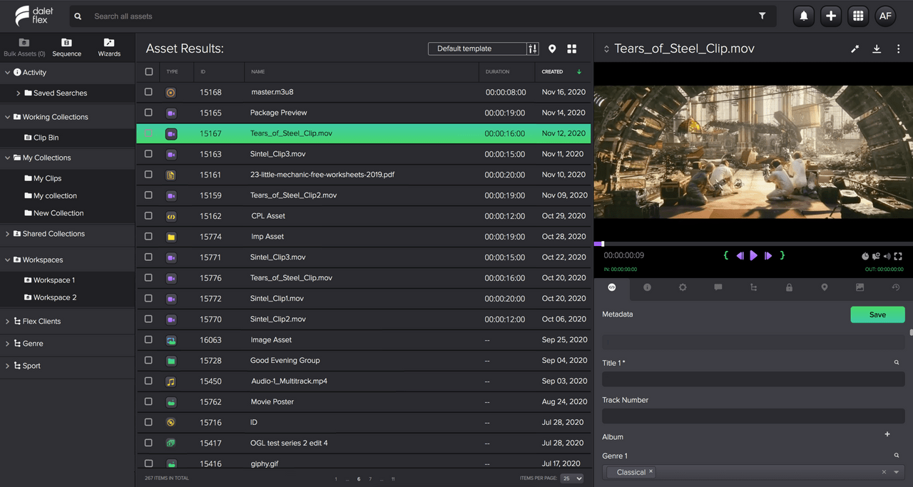 Upload and organize your assets: video, images, subtitles, text, audio files